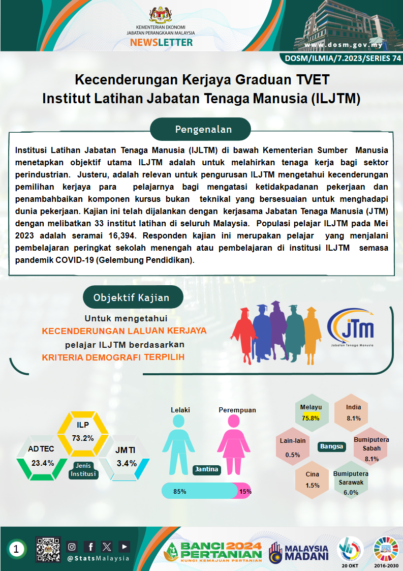 DOSM/ILMIA/7.2023/SERIES 74 - Kecenderungan Kerjaya Graduan TVET Institut Latihan Jabatan Tenaga Manusia (ILJTM)