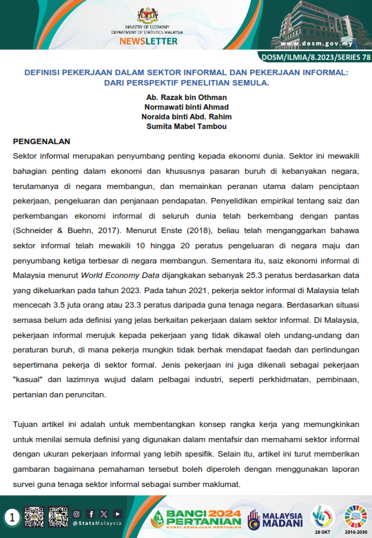 DOSM/ILMIA/8.2023/SERIES 78 - Definisi Pekerjaan Dalam Sektor Informal Dan Pekerjaan Informal: Dari Perspektif Penelitian Semula