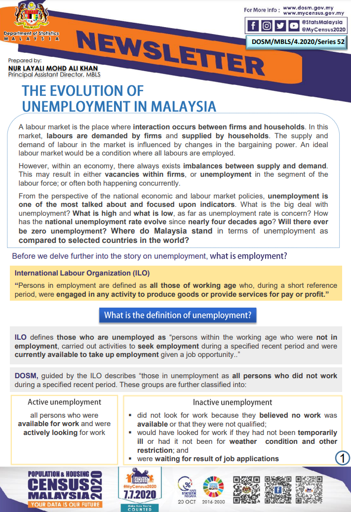 DOSM/MBLS/4.2020/Series 52 (The Evolution of Unemployment in Malaysia)