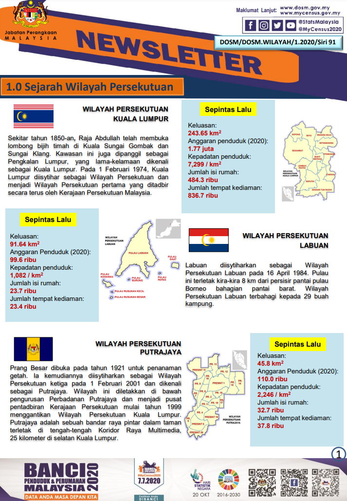 DOSM/DOSM.Wilayah/1.2020/Series 91 (Sejarah Wilayah Persekutuan) *