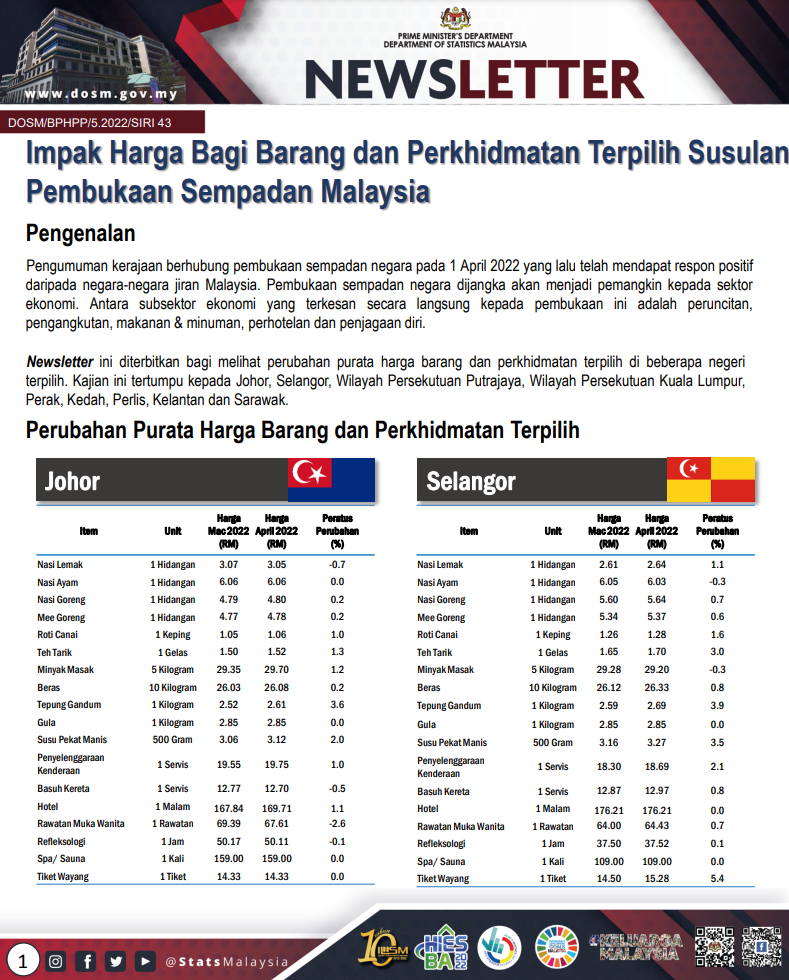 DOSM/BPHPP/5.2022/Series 43 – Impak Harga Bagi Barang Dan Perkhidmatan Terpilih Susulan Pembukaan Sempadan Malaysia