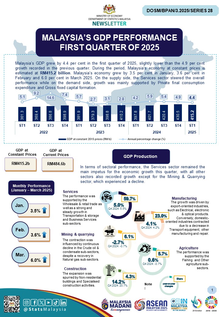 DOSM/BPAN/3.2025/SERIES 28 - MALAYSIA'S GDP PERFORMANCE FIRST QUARTER OF 2025