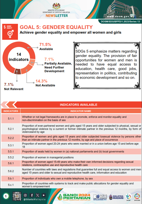 DOSM/SDG/BPPD/1.2023/Series 13 - Gender Equality and Women Empowerment