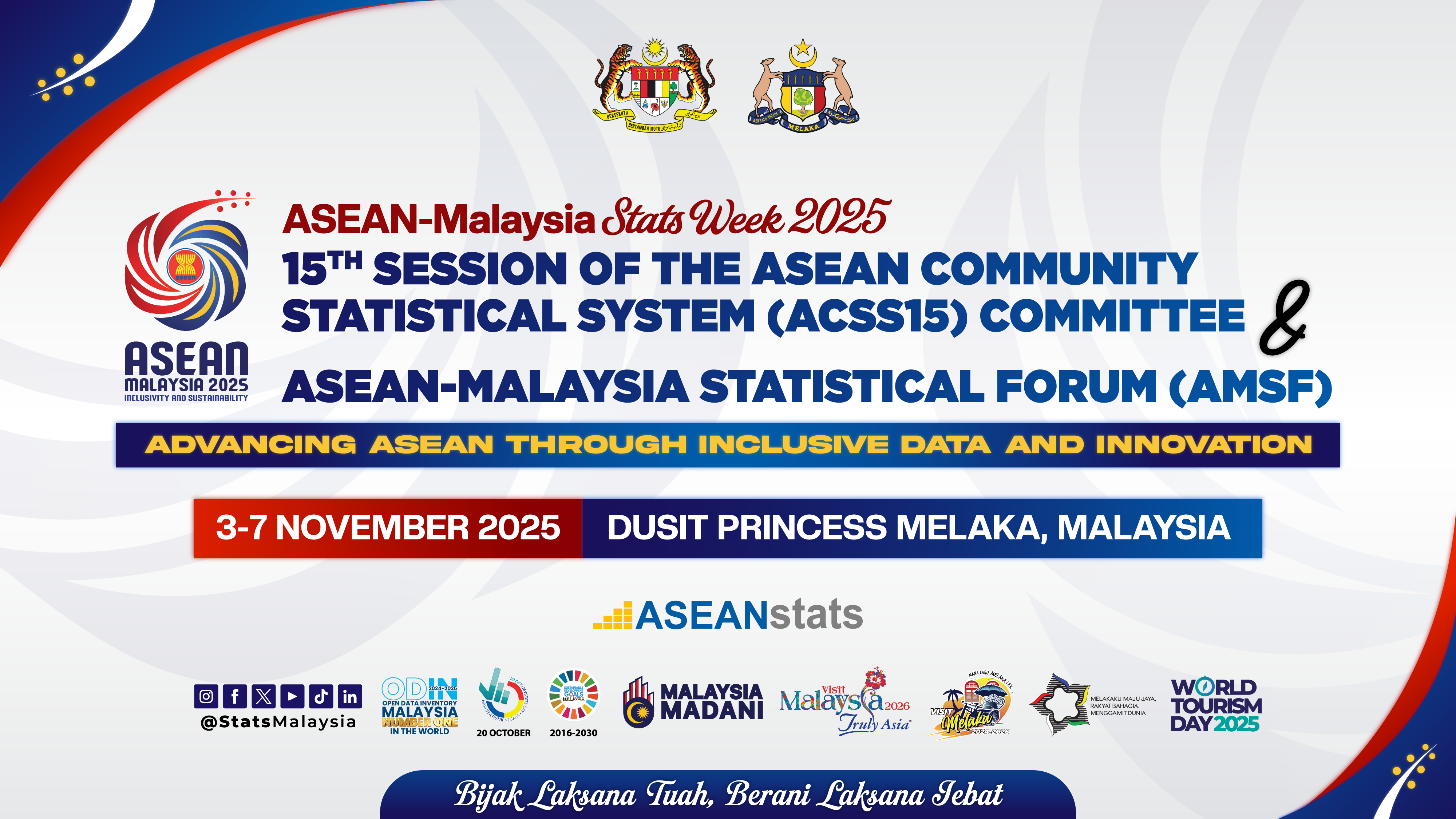 The ASEAN Community Statistical System (ACSS) is the highest statistical body within ASEAN, officially established in 2011 to replace the ASEAN Heads of Statistical Offices Meeting (AHSOM), which had been convened since 1997. As the principal entity within the ASEAN statistical ecosystem, the ACSS plays a vital role in strengthening technical and professional cooperation among ASEAN Member States (AMS) in support of the ASEAN Community agenda, particularly in the areas of statistical compilation, dissemination, and communication based on international standards. The members of the ACSS comprise the Chief Statisticians/ Heads of Departments from the National Statistical Offices (NSOs) of AMS. Specifically, the ACSS operates under the oversight of the ASEAN Economic Community (AEC) and reports to the ASEAN Economic Ministers (AEM) through the Senior Economic Officials Meeting (SEOM). The Session was chaired by YBhg. Dato Sri Dr. Mohd Uzir Mahidin, Chief Statistician of Department of Statistics Malaysia, with Ms. Minerva Eloisa P. Esquivias, Deputy National Statistician of Philippine Statistics Authority as the Co-chairperson. ASEAN–Malaysia Stats Week 2025 is a five-day programme on official statistics bringing together officials from ASEAN national statistical offices, the ASEAN Secretariat, and participants from partners, academia, industry players, and students in Melaka from 3 to 7 November 2025. Organised under the theme “Advancing ASEAN Through Inclusive Data and Innovation,” it reflects ASEAN’s commitment to inclusive, innovation-driven regional development powered by high-quality data and strategic collaboration. ACSS15 anchors the week with formal proceedings from 3 to 5 November 2025. The Committee meets to deliberate governance, action plans, monitoring arrangements, and technical standards that ensure coherent regional statistics. A historic highlight is the participation of Timor-Leste as the eleventh ASEAN member in regional statistical cooperation, with collective support pledged to help integrate its national statistical system. |