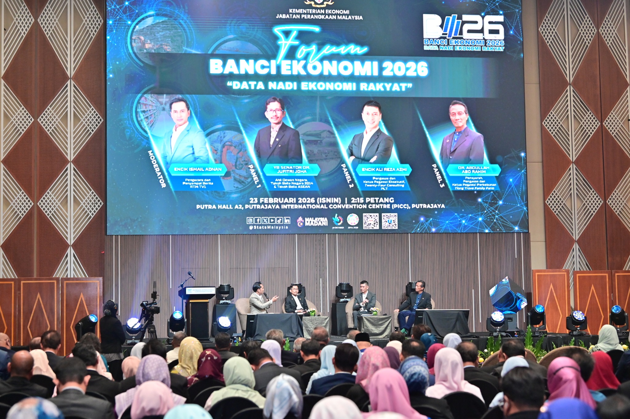 Sekitar Majlis Peluncuran Banci Ekonomi 2026 yang dirasmikan oleh YB Tuan Haji Akmal Nasrullah bin Haji Mohd Nasir, Menteri Ekonomi serta Forum Banci Ekonomi 2026 yang dilaksanakan di Pusat Konvensyen Antarabangsa Putrajaya (PICC) pada 23 Februari 2026.