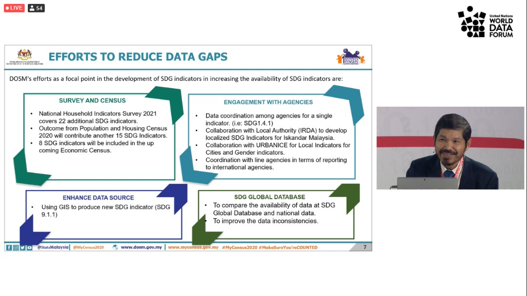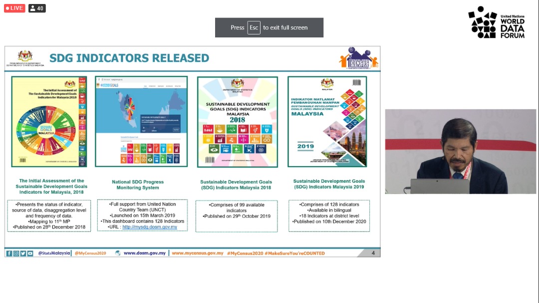 Malaysia has successfully shared DOSM’s best practices and experiences in the compilation of the SDGs covering the current achievement, initiatives to reduce data gaps, challenges and moving forward during the session of Developing national SDG indicators – what is the data situation for ‘leaving no one behind - producer and user perspective.