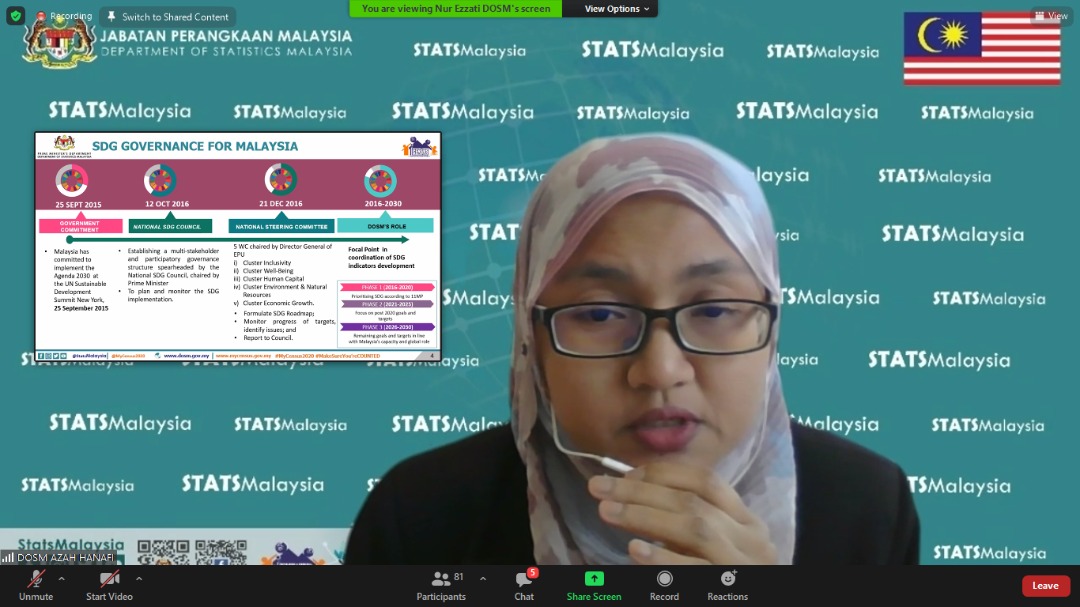 Knowledge sharing from DOSM with the topic of DOSM Involvement and SDG indicators.