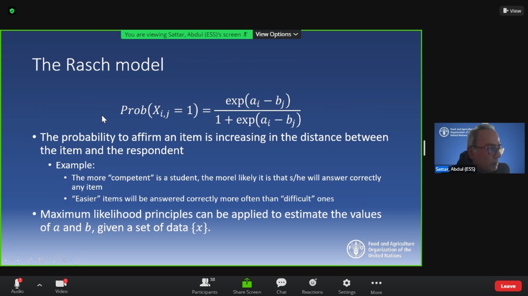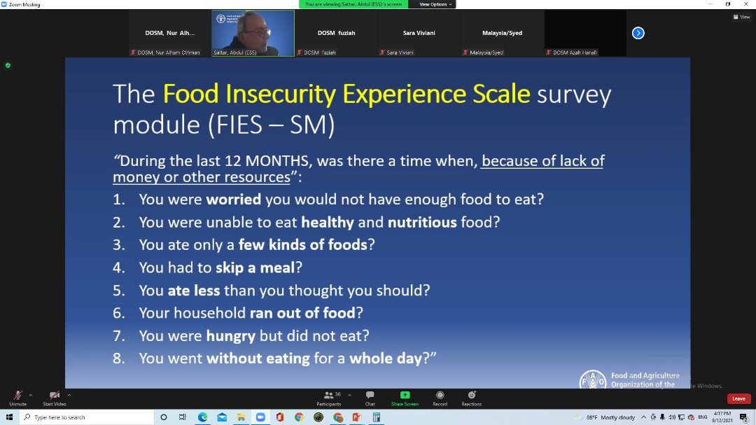VIRTUAL TRAINING SESSIONS ON THE METHODOLOGY FOR SDG2.1.2 BY FOOD AND AGRICULTURE ORGANIZATION (FAO)