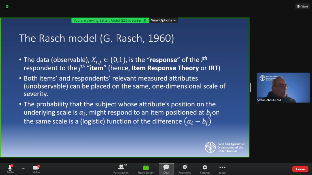 This session aims to learn on the methodology for analyzing Food Insecurity Experience Scale (FIES) related questions. FAO has presented the concept and method of calculating the Food Insecurity scale Experience using the data as discussed.