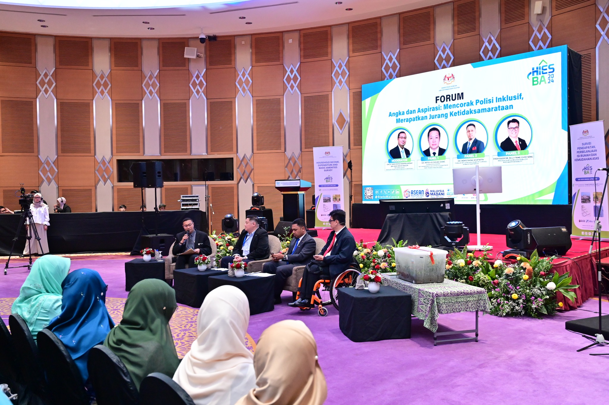 Sekitar Sesi Forum yang bertajuk "Angka dan Aspirasi: Mencorak Polisi Inklusif, Merapatkan Jurang Ketidaksamarataan" bersempena Majlis Peluncuran Laporan Survei Pendapatan dan Perbelanjaan Isi Rumah (HIES) 2024 pada 8 Oktober 2025 di PICC, Putrajaya.