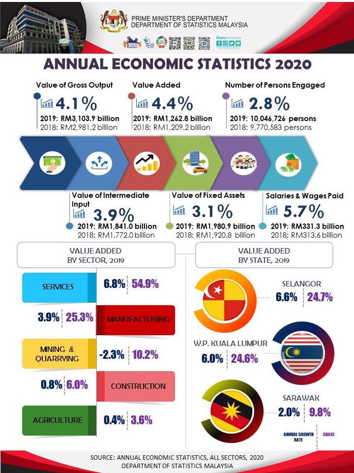 The full publication of the Annual Economic Statistics All Sectors 2020 can be downloaded through eStatistik Portal.