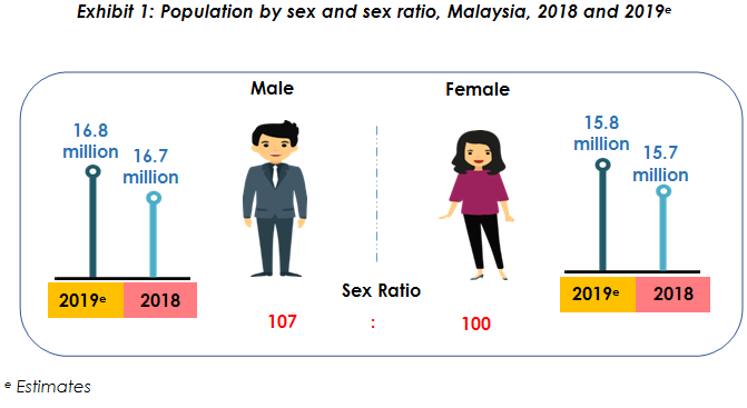 Malaysia’s population in 2019 is estimated at 32.6 million, increased from 32.4 million as compared to 2018. The total population comprises of 29.4 million (90.2%) Citizens and 3.2 million (9.8%) Non–citizens.