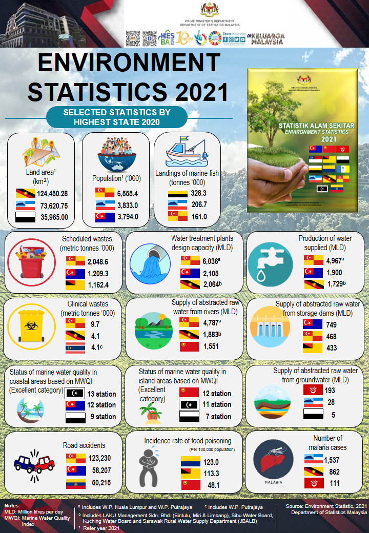 The full publication of the Environment Statistics 2021 can be downloaded through eStatistik portal.