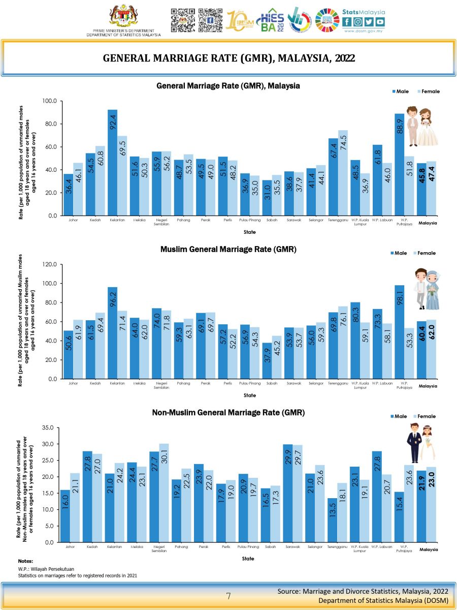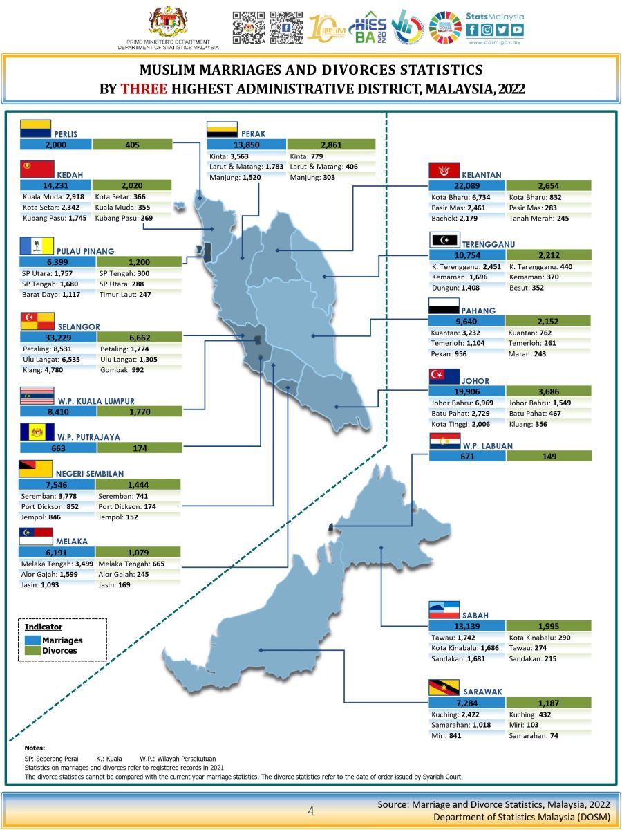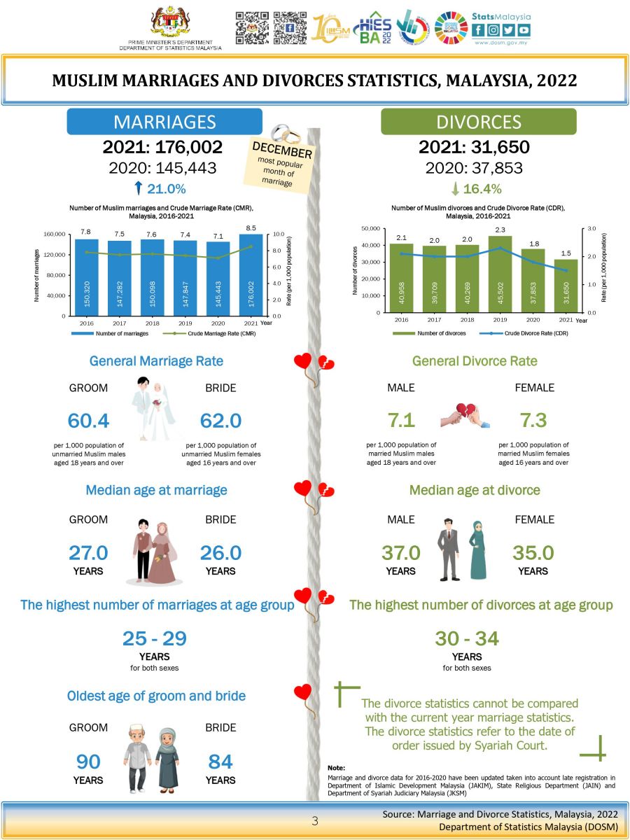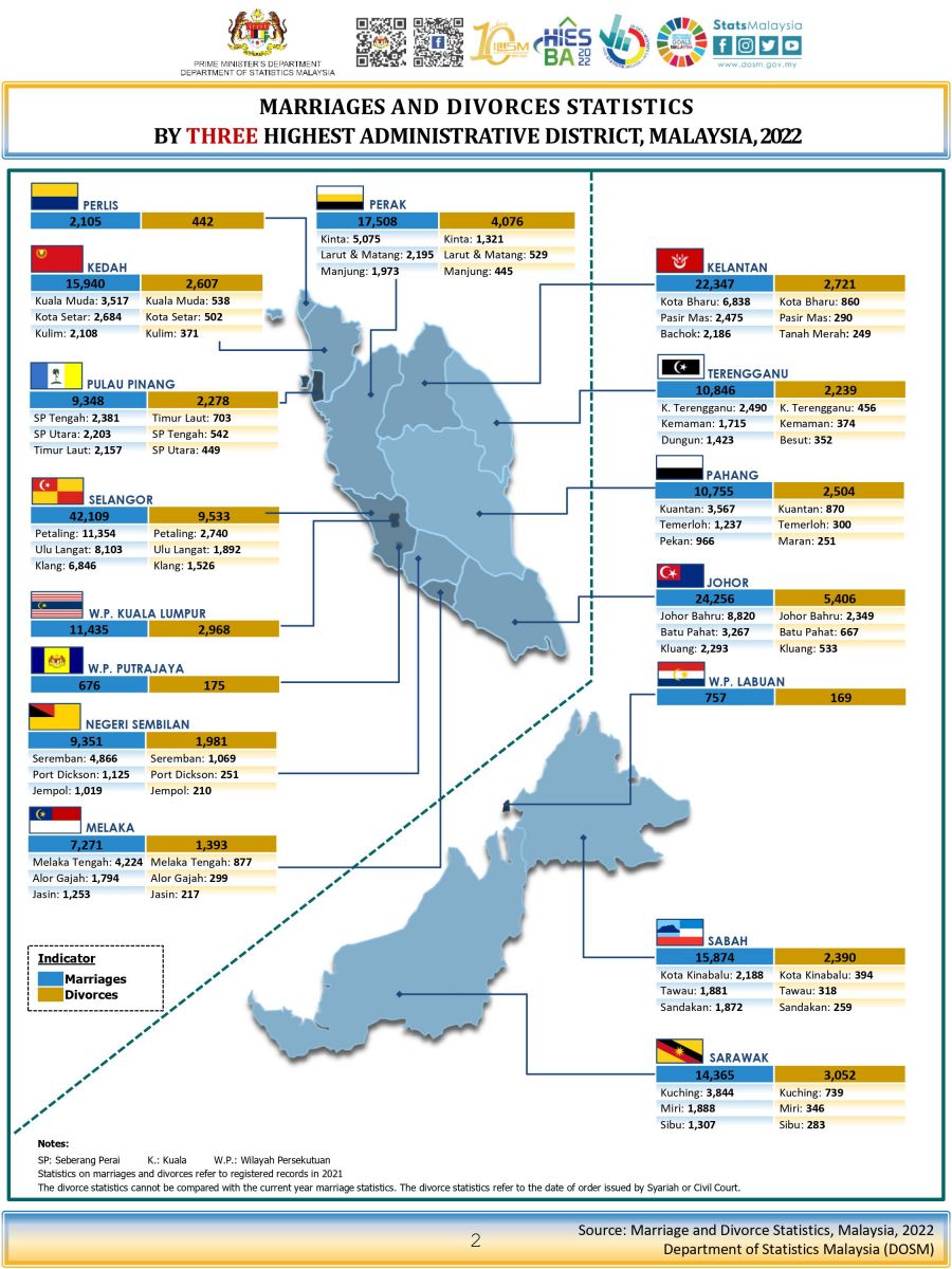 The full publication of the Marriage And Divorce, Malaysia, 2022 can be downloaded from  eStatistik   portal.