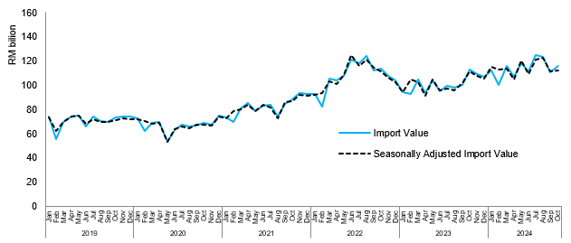 a value of RM116.1 billion in October 2024, grew by 2.6 per cent or RM3.0