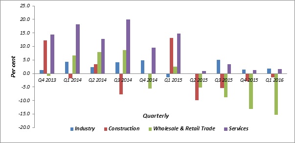 Chart II: Confidence Indicator by Sector, 2013-2016