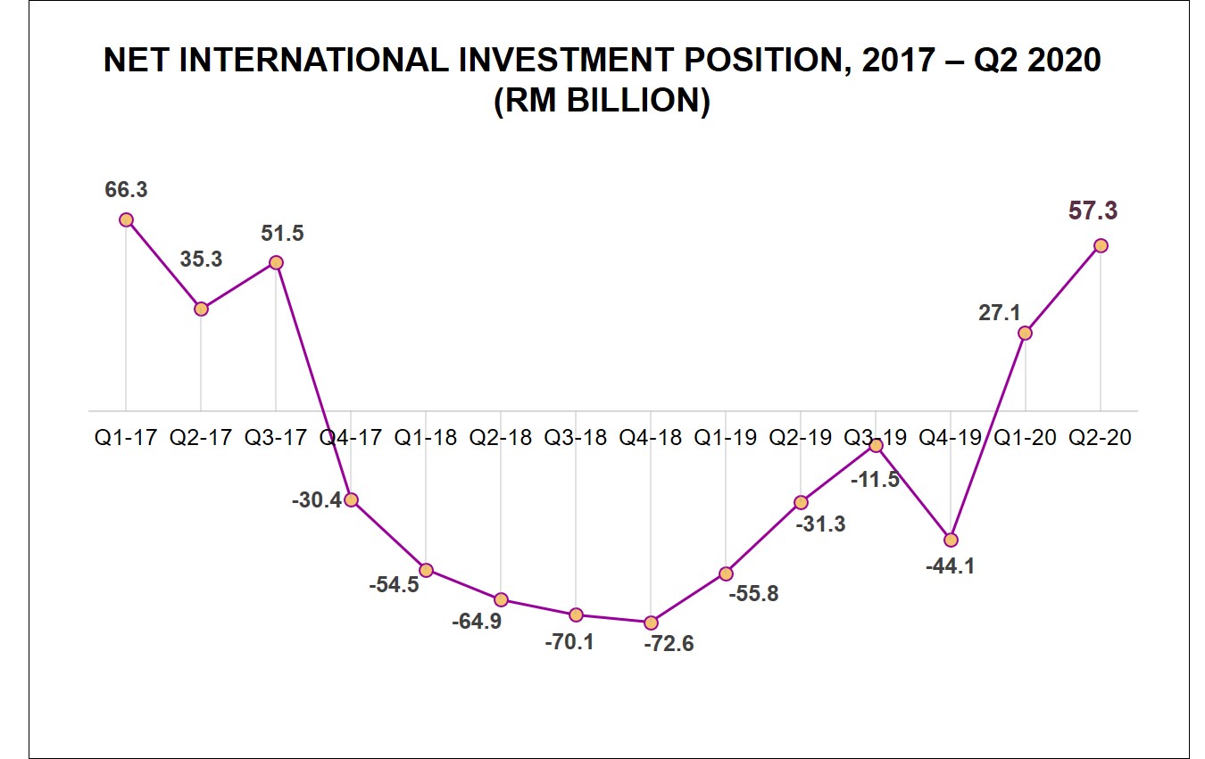 Malaysia's international investment position recorded a higher net assets of RM57.3 billion