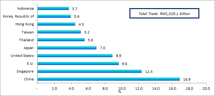 - Electrical and electronic (E&E) products (41.3% of total exports), declined RM1.2 billion (-3.2%) to RM37.4 billion;