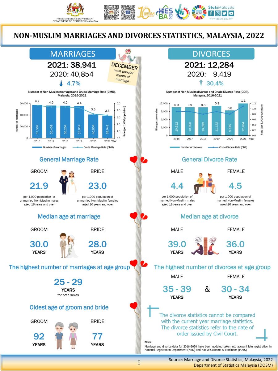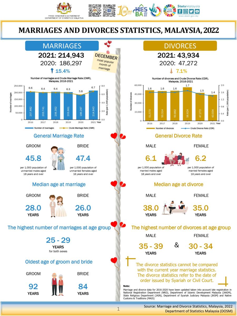 The full publication of the Marriage And Divorce, Malaysia, 2022 can be downloaded from eStatistik portal.