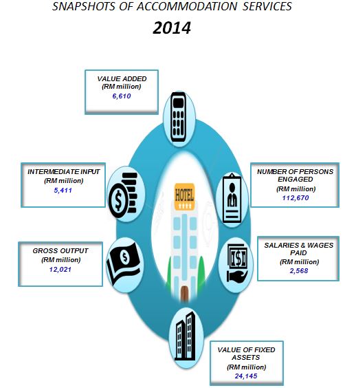 This report presents statistics on accommodation services comprising hotels (including resort hotels), budget hotels, apartment hotels, chalet and rest houses/ guest houses/ hostels/ bed & breakfast. The statistics presented were compiled from the Survey of Services Establishment conducted in 2015 for reference year 2014.