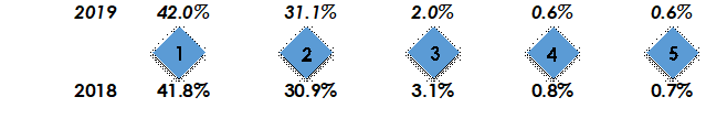 Ischaemic heart diseases remained as the principal causes of death for males (17.3% in 2019). This is followed by Pneumonia (11.6%), Cerebrovascular diseases (7.5%), Transport accidents (5.5%) and Malignant neoplasm of trachea, bronchus and lung (2.7%).
