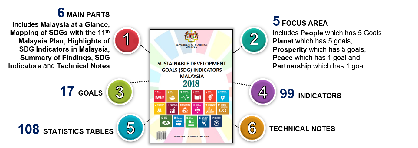 A total of 108 tables encompassing 99 indicators under 17 goals have been compiled as important references for government, private sectors, academicians, Non-Government Organisations (NGOs), Civil Society Organisation (CSO) and individuals. The indicators can be used as an input for research, policy formulation as well as monitoring and evaluating the effectiveness of the national development programmes.